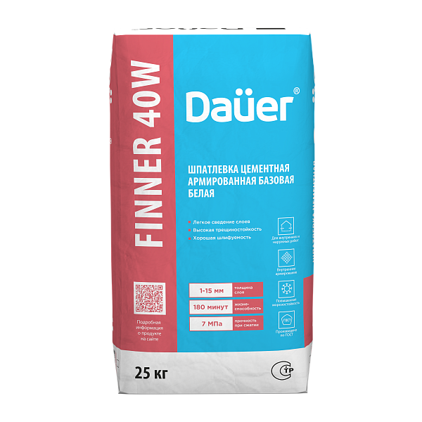 Dauer Finner® 40 W Шпатлевка цементная армированная базовая белая