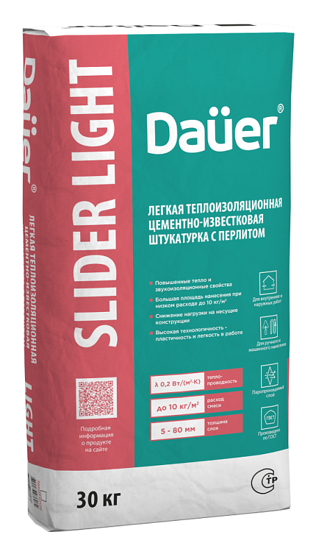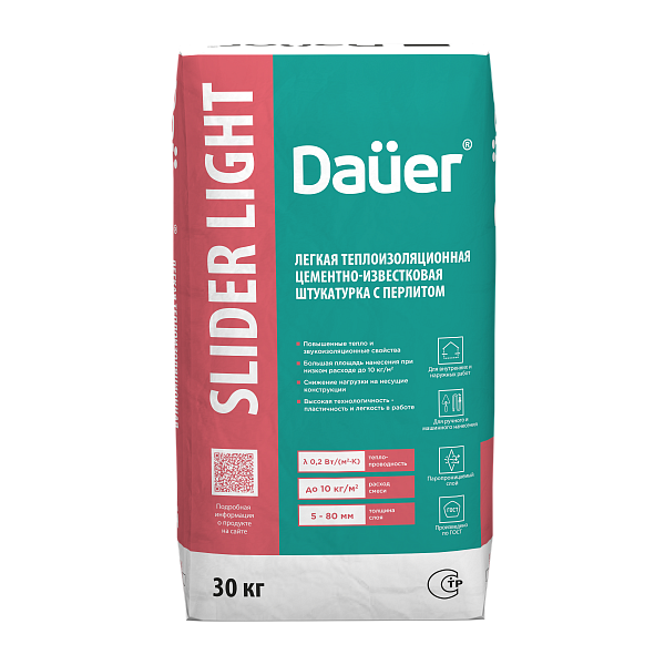 Штукатурка цементная: SLIDER FASAD Light Легкая теплоизоляционная цементно-известковая штукатурка с перлитом, упаковка 30 кг
